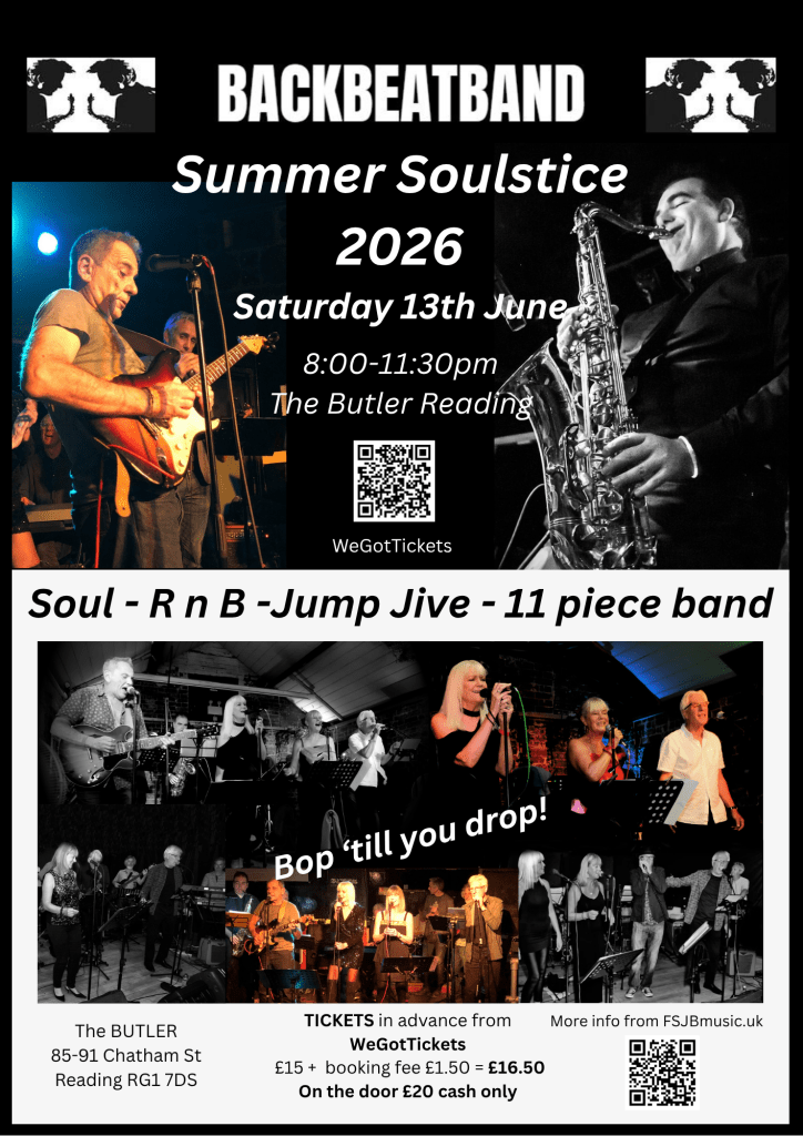 BACKBEAT BAND’s SUMMER SOULSTICE 26 – tickets in advance:https://wegottickets.com/f/16990